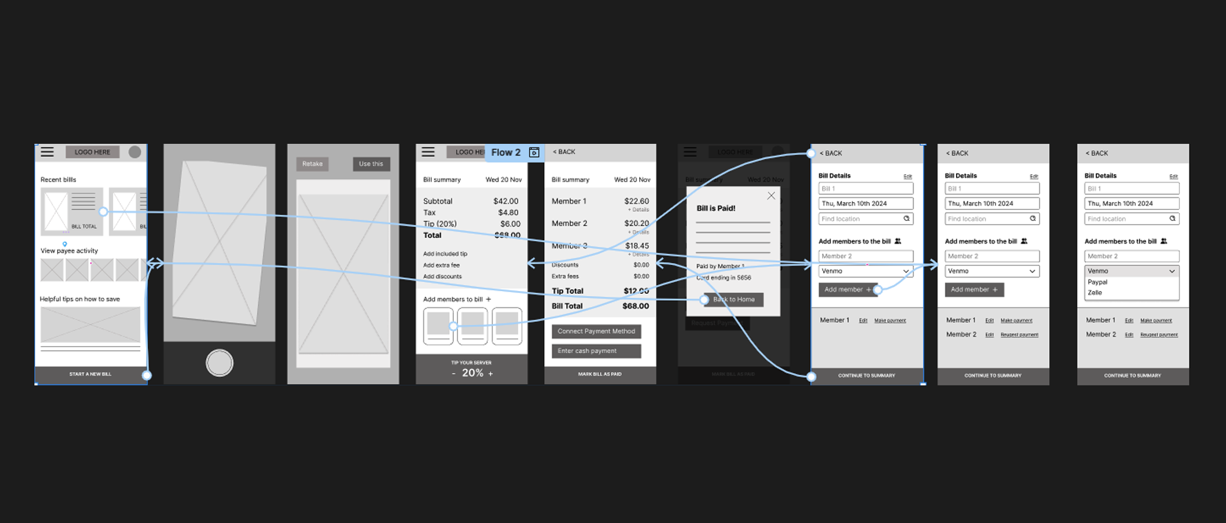 Initial wireframes focused on: